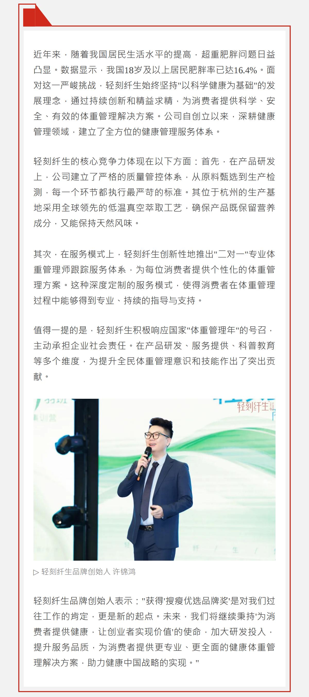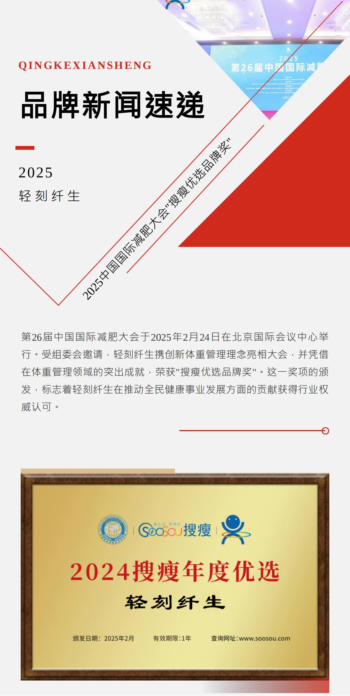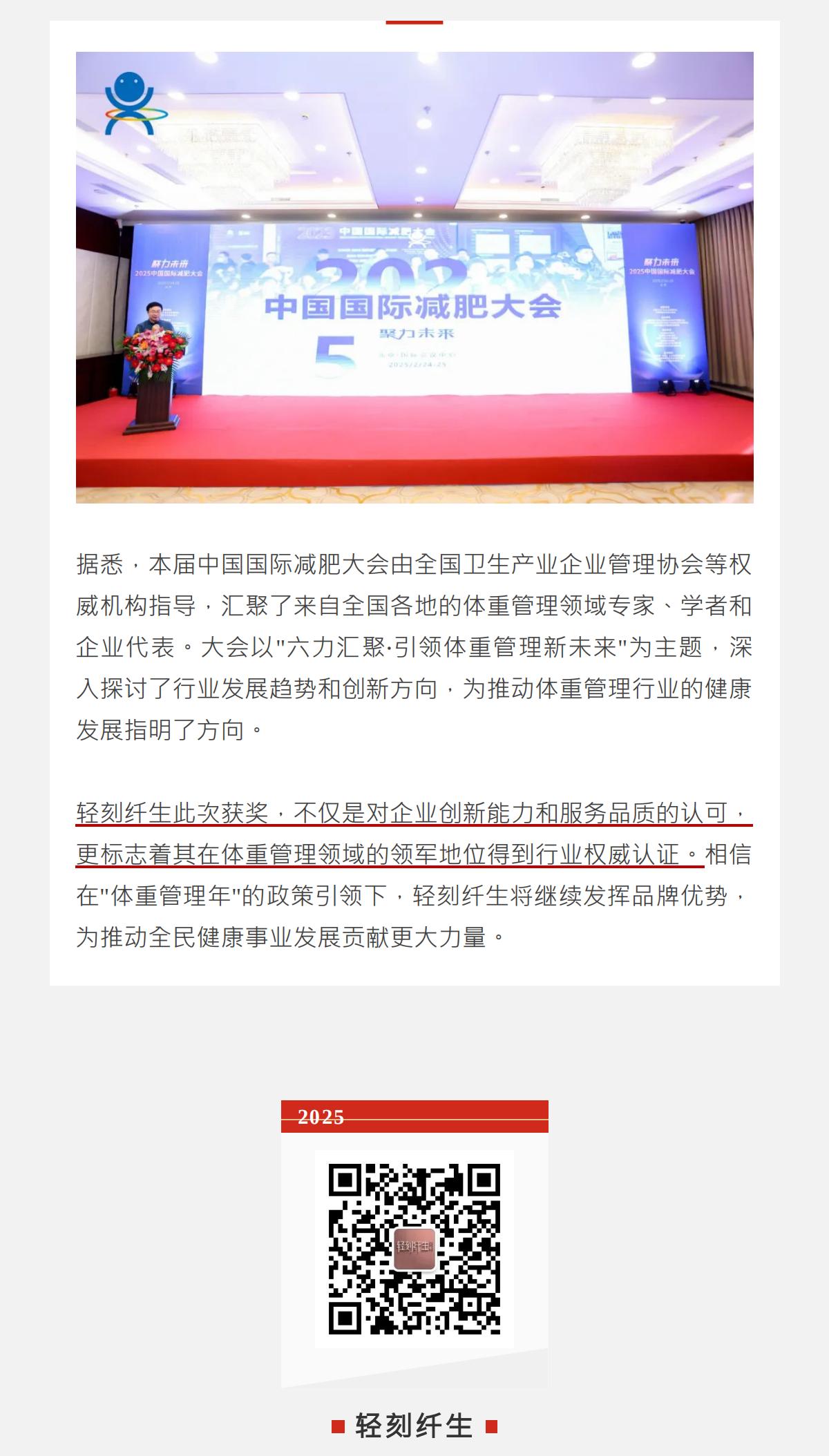 喜讯 | 轻刻纤生荣获2025中国国际减肥大会"搜瘦优选品牌奖"